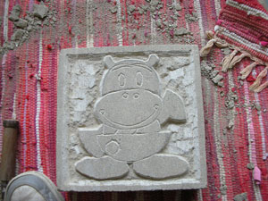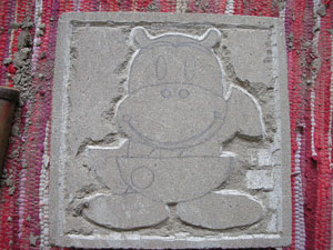 この20cm×20cmの来待石の中にはいるように、絵をかきます。 その場で決めるのには、時間がかかりますので、何を彫るか前もって 決めてから来館していただけるとスムーズに体験できます。見本など もっていらっしゃってもいいですね。あまり細かいものは難しいです。